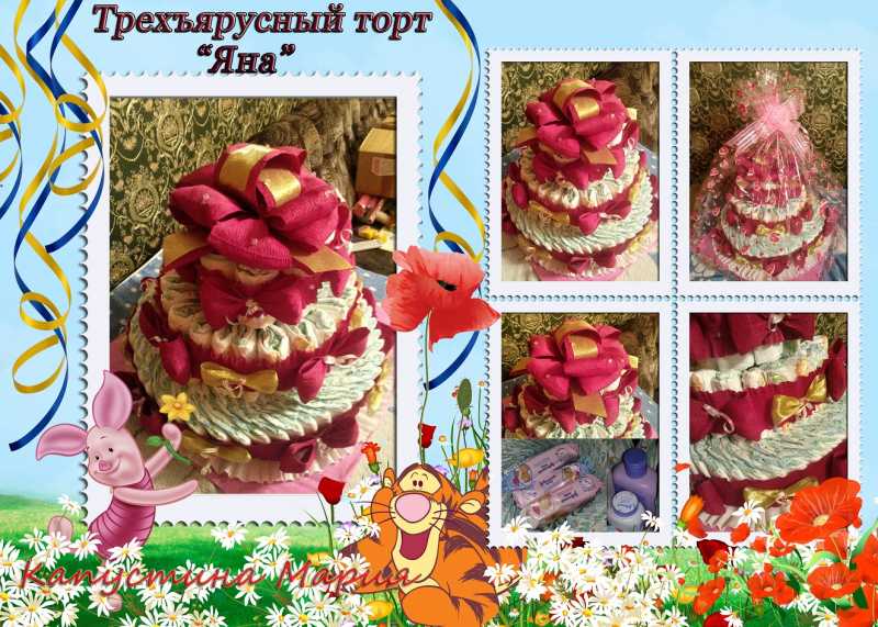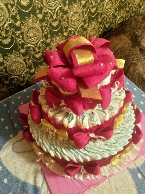 Тортик из подгузников - самый удивительный и запоминающийся подарок для малыша и родителей!