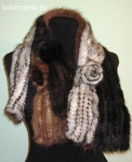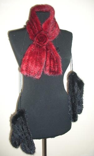 Шарфы и варежки из норки вязаной с розой Греция